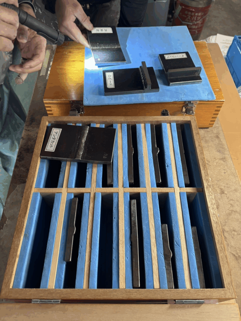 言葉や写真だけではなかなか伝わりにくい溶接の欠陥について、見て触ってイメージを膨らませ、自らの技術に落とし込んでいく。