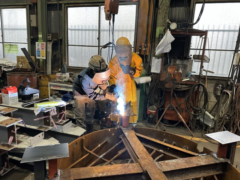 溶接、塗装、グラインダーを一人ずつ順番に体験してもらいました。