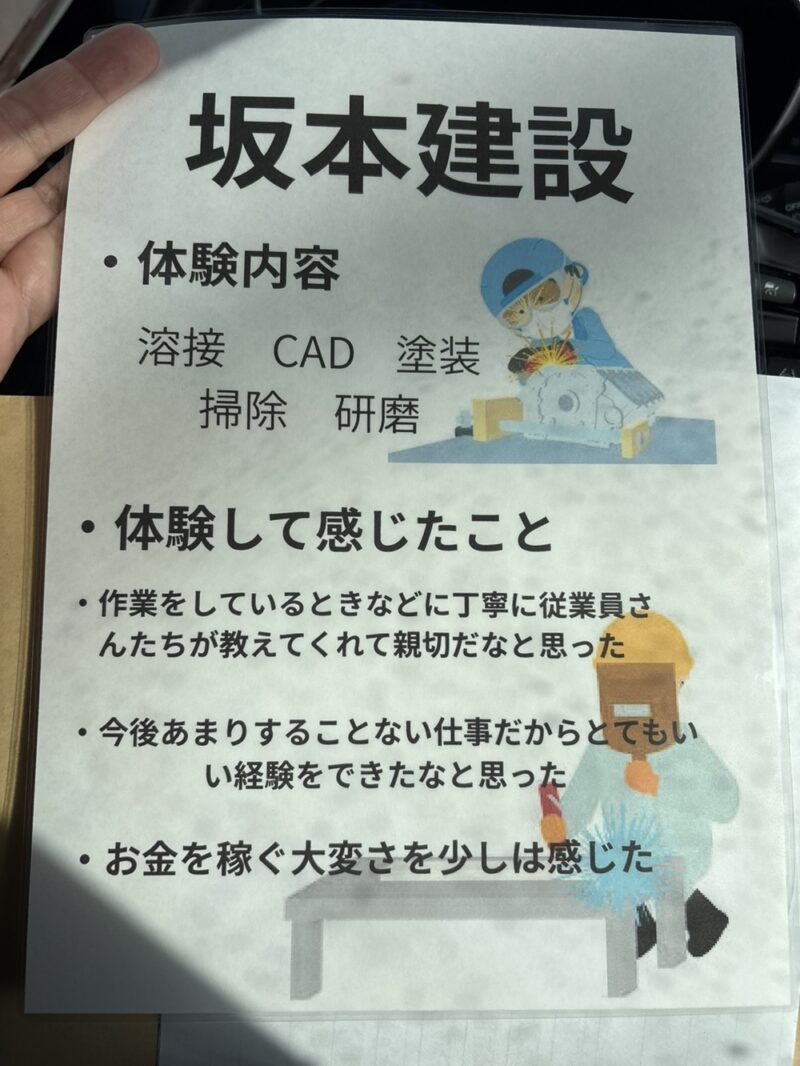 後日、お礼状と職業体験に来られた生徒さんが作成した坂本建設(有)の素敵なポスターが届きました。